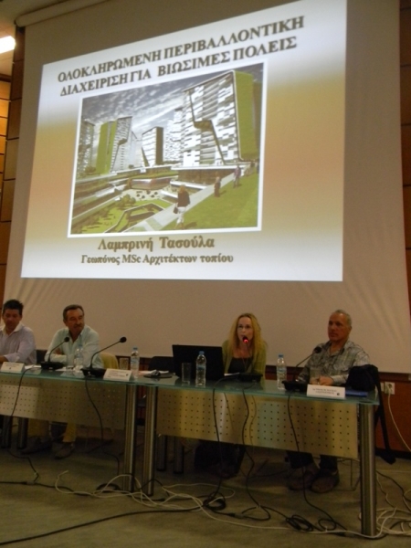 2. «Ολοκληρωμένη περιβαλλοντική διαχείριση για βιώσιμες πόλεις» με εισηγήτρια την Κα Λαμπρινή Τασούλα, Γεωπόνο Αρχιτέκτονα Τοπίου (Μ.Sc.) και υποψήφια Διδάκτορα Γεωπονικού Πανεπιστημίου Αθηνών.