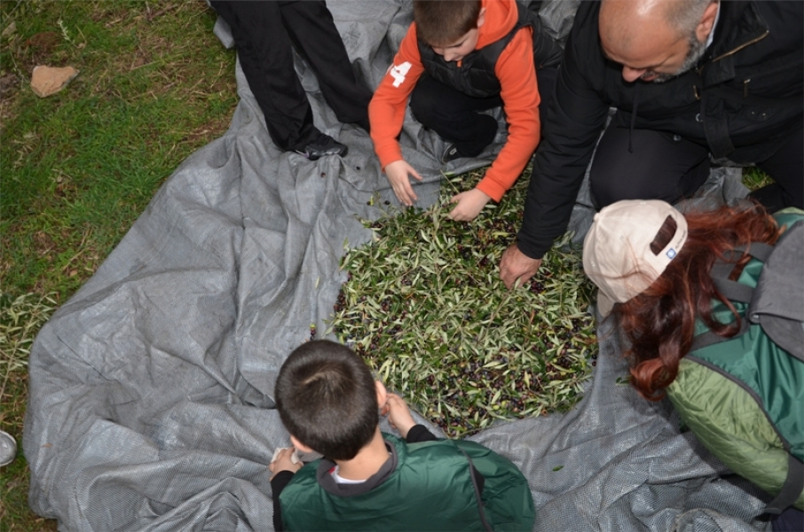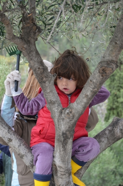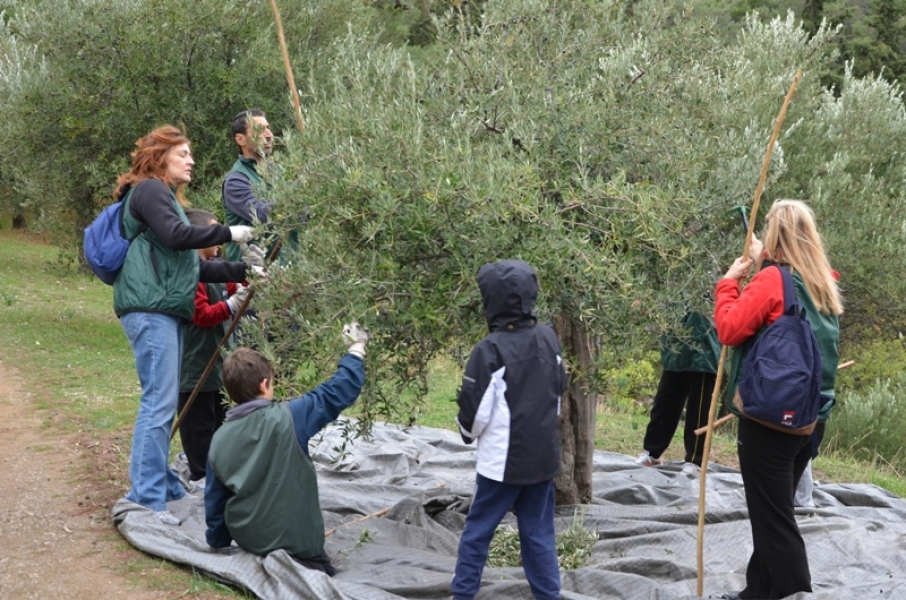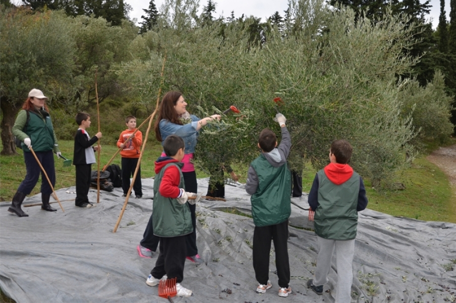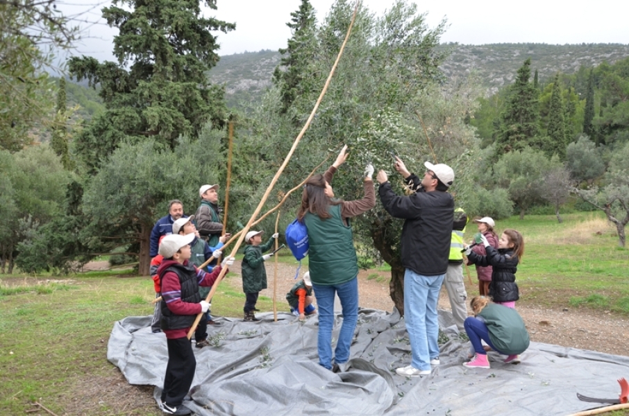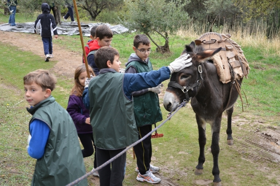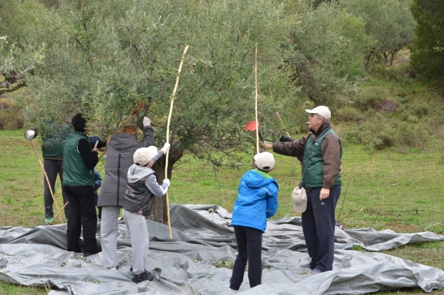Μετά τον ζεστό καφέ και τις ευχές για καλό μήνα και αφού μοιράστηκαν τα καπέλα και τα γιλέκα, απαραίτητα και τα δύο στο τσουχτερό κρύο, χωρίστηκαν σε ομάδες και με τη βοήθεια του προσωπικού της Φιλοδασικής ξεκίνησαν το τίναγμα των κλαδιών, το ξεχώρισμα και το μάζεμα του καρπού. Μετά γέμισαν με ελιές τους σάκους και τους φόρτωσαν στα γαϊδουράκια. Η μεγάλη στιγμή για όλα τα παιδιά. Ενθουσιασμός.