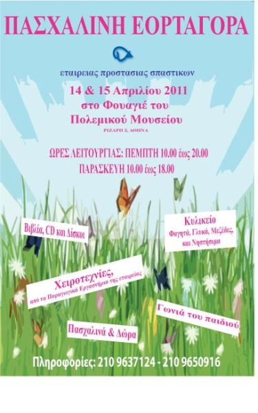 Στις 14 και 15 Απριλίου η Εταιρεία Προστασίας Σπαστικών οργάνωσε μια πολύ επιτυχημένη Πασχαλινή Εορταγορά στο Πολεμικό Μουσείο με σκοπό να συγκεντρώσει χρήματα για να μπορέσει να συνεχίσει να φροντίζει τα παιδιά της.