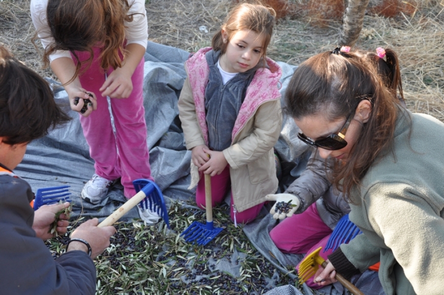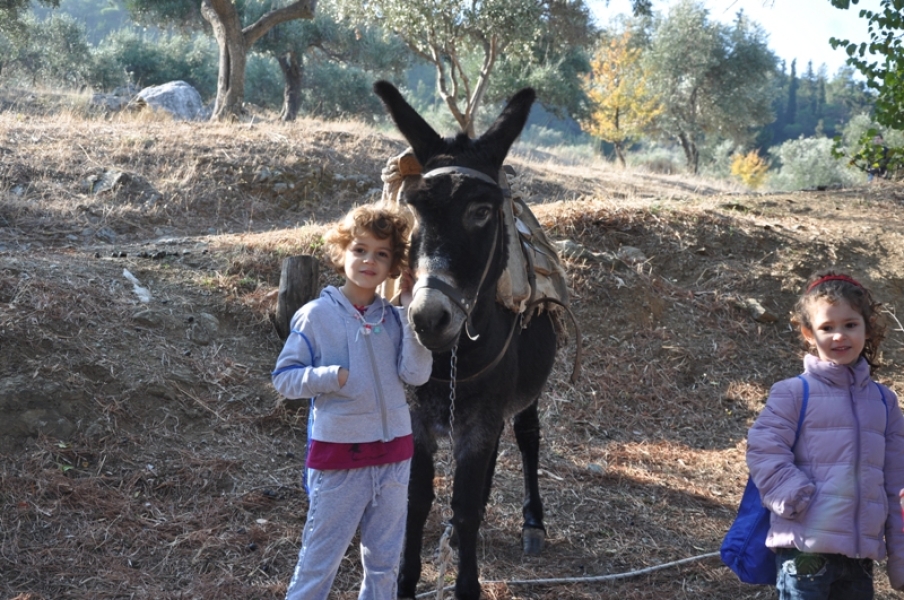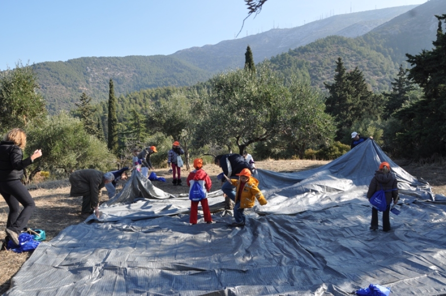 Οι εθελοντές, σχεδόν επαγγελματίες πια, ήρθαν με τα παιδιά τους σε αυτό το χαρούμενο πανηγύρι και βοήθησαν στο μάζεμα, ξεχώρισαν τον καρπό από τα φύλλα και γέμισαν τα σακιά, που φορτώθηκαν στα γαϊδουράκια.