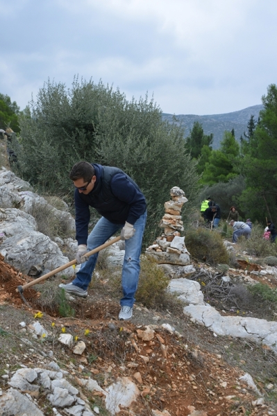 Οπλισμένοι με όρεξη και αγάπη για το περιβάλλον, έσκαψαν, στήριξαν και φύτεψαν στην αναδασωτέα περιοχή που είχε καταστραφεί στις πυρκαγιές του 2007.