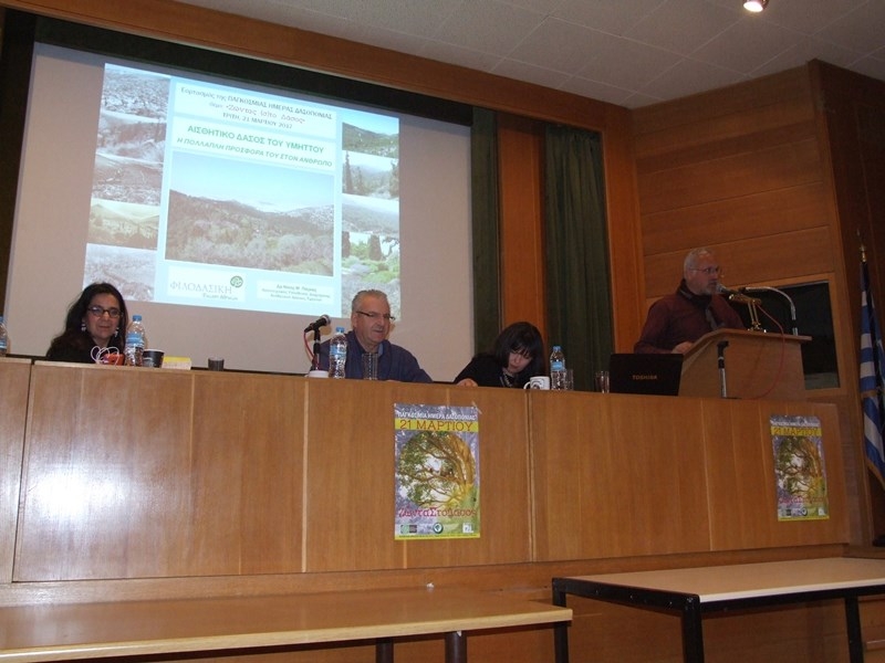 Στην Αθήνα, στην εκδήλωση με θέμα «Ζώντας (σ)το Δάσος» παρουσιάστηκαν εισηγήσεις με σχετικό περιεχόμενο από ερευνητές του ΙΜΔΟ και άλλους προσκεκλημένους. Μεταξύ αυτών είχε προσκληθεί ως ομιλητής και ο κ. Ν.Πάγκας ως εκπρόσωπος της Φιλοδασικής για να παρουσιάσει το Αισθητικό δάσος του Υμηττού και την πολλαπλή προσφορά του στον άνθρωπο. Αναλυτικότερα το πρόγραμμα της εκδήλωσης περιέλαβε τις εξής ομιλίες: