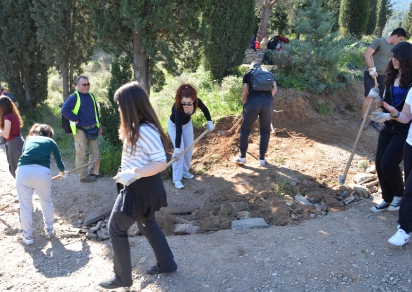 Έτσι πήραν μέρος στην βελτίωση του καταστρώματος του χωματόδρομου, που οδηγεί στον λόφο του «Καλόγερου», που είχε καταστραφεί από τις βροχές του χειμώνα.