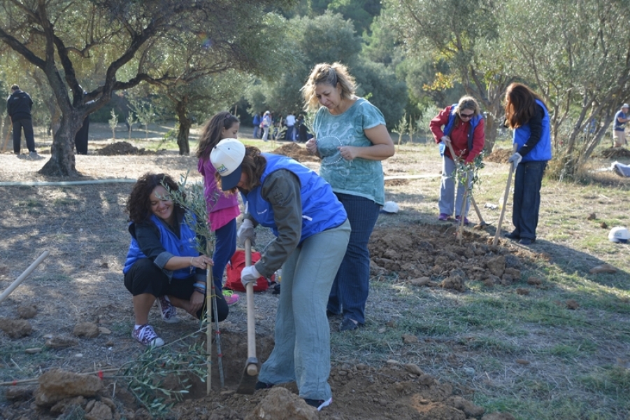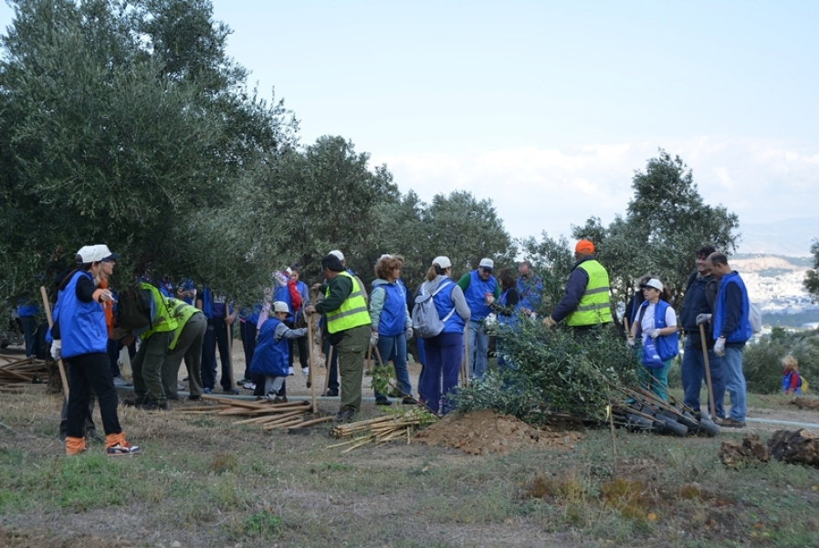 Στη συνέχεια της επέκτασης του Βοτανικού Μονοπατιού που κάναμε τον Μάρτιο του 2014 με τους εθελοντές της Alpha Bank, μαζευτήκαμε και πάλι την Κυριακή 19 Οκτωβρίου για να συνεχίσουμε. Όλος ο χώρος πίσω από τα δέντρα που οριοθετούν το μονοπάτι φυτεύτηκε με ελιές, αμυγδαλιές, κυπαρίσσια και άλλα ανάλογα φυτά και δέντρα, ώστε ο επισκέψιμος χώρος στο Βοτανικό Μονοπάτι, να εμπλουτισθεί και να ενωθεί με τους ήδη δενδροφυτεμένους χώρους ανάμεσα στον Ιστορικό Ελαιώνα και την Μονή Καισαριανής.
