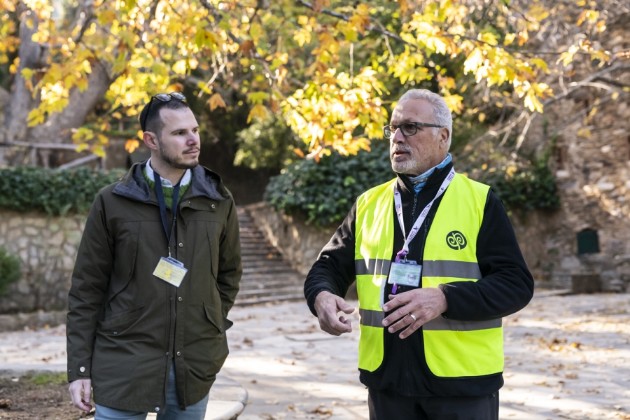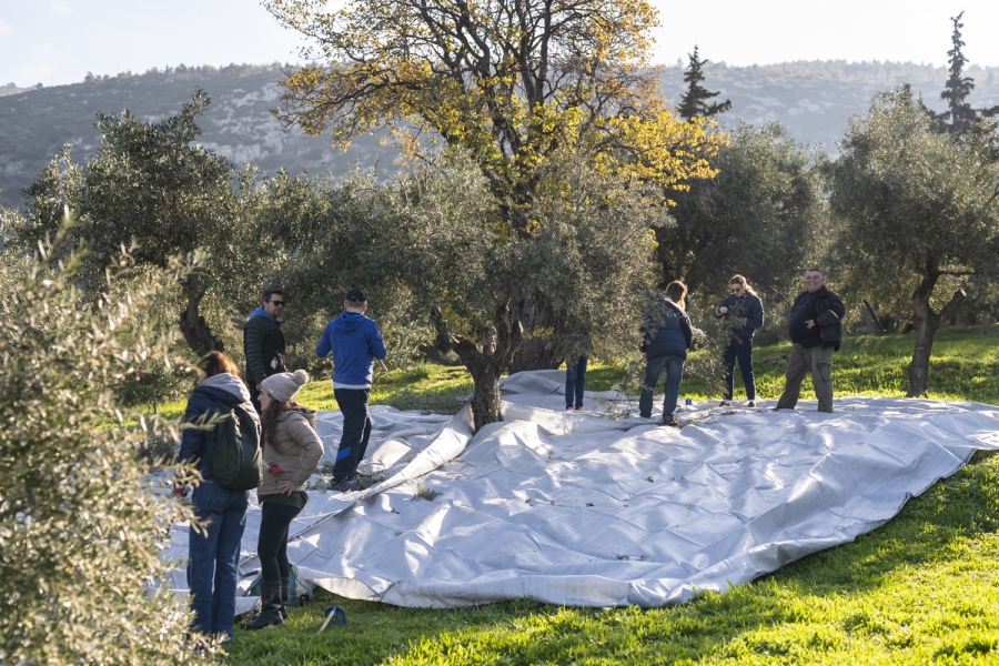 Οι συμμετέχοντες/χουσες εντάχθηκαν στη διαδικασία της συγκομιδής του ελαιοκάρπου στον Ιστορικό Ελαιώνα γύρω από τη Μονή Καισαριανής – ένας ελαιώνας που δημιουργήθηκε και φροντίζεται από τη Φιλοδασική.