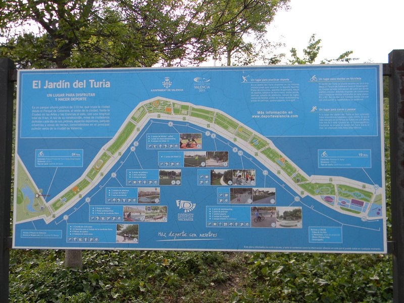• Οι κήποι του ποταμού Túria, στην πόλη της Βαλένθια αποτελούν ένα μοναδικό γραμμικό πάρκο αναψυχής στην καρδιά της πόλης. Για να αποφευχθούν οι καταστροφικές πλημμύρες του ποταμού που διέσχιζε τη Βαλένθια, η Πολιτεία γύρω στο 1920 εξέτρεψε τον ρου του ποταμού εκτός του οικιστικού ιστού και τον οδήγησε μέσω εγκιβωτισμού στη θάλασσα. Ολόκληρη η αποδεσμευμένη κοίτη μήκους 8 χλμ. περίπου που περιβάλλει από τα βόρεια και ανατολικά την παλιά πόλη, διαμορφώθηκε σε γραμμικό πάρκο με πυκνό πράσινο, πεζοδρόμους, ποδηλατοδρόμους, στοιχεία νερού, βοτανικό κήπο, αθλητικές εγκαταστάσεις και υποδομές, παιδικές χαρές κλπ. Τα πρόσφατα χρόνια στην έξοδο της λωρίδας προς τη θάλασσα, κατασκευάστηκε «η Πόλη των Τεχνών και των Επιστημών» που φιλοξενεί μεταξύ άλλων την Όπερα και ένα διεθνούς φήμης Ενυδρείο, με πρωτότυπα κτήρια του γνωστού αρχιτέκτονα Calatrava. Στο βόρειο-βορειοδυτικό άκρο του πάρκου δημιουργήθηκε το περιβόητο ζωολογικό πάρκο “Bioparc” που φιλοξενεί ζώα από την Αφρική σε χώρους κατάλληλα διαμορφωμένους ώστε να μοιάζουν φυσικοί, και ο μεγάλος χώρος του συνδέθηκε με νέες διαμορφώσεις και μια μεγάλη τεχνητή λίμνη, που ολοκληρώνουν το πάρκο πρασίνου.