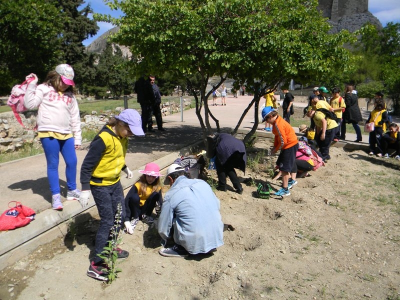 Μαθητές σχολείων φύτεψαν αρωματικά φυτά στο ιερό του Διονύσου στην Ακρόπολη