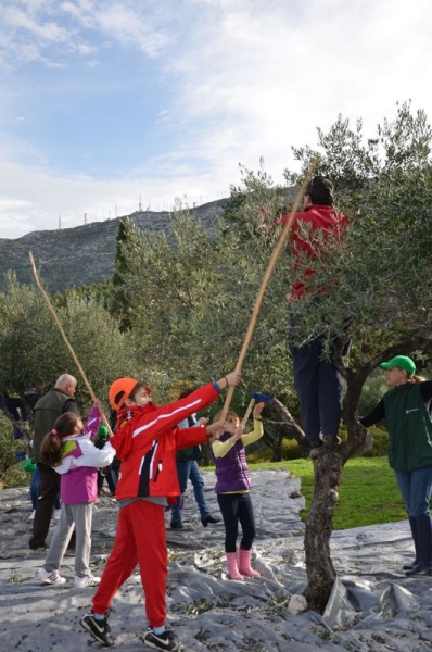Με μεγάλη συμμετοχή εργαζομένων εθελοντών της Τραπέζης, με τα παιδιά τους χαρούμενα και φασαριόζικα να ζωντανεύουν τον Ελαιώνα, βοήθησαν και πάλι στο μάζεμα, το ξεχώρισμα και το φόρτωμα του ελαιοκάρπου, για να μεταφερθεί στο Ελαιοτριβείο.
