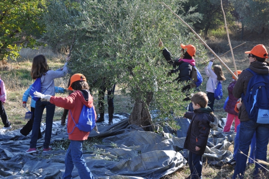 Οι εθελοντές, σχεδόν επαγγελματίες πια, ήρθαν με τα παιδιά τους σε αυτό το χαρούμενο πανηγύρι και βοήθησαν στο μάζεμα, ξεχώρισαν τον καρπό από τα φύλλα και γέμισαν τα σακιά, που φορτώθηκαν στα γαϊδουράκια.